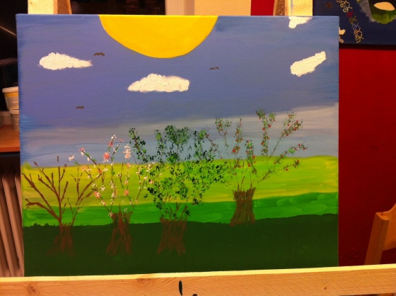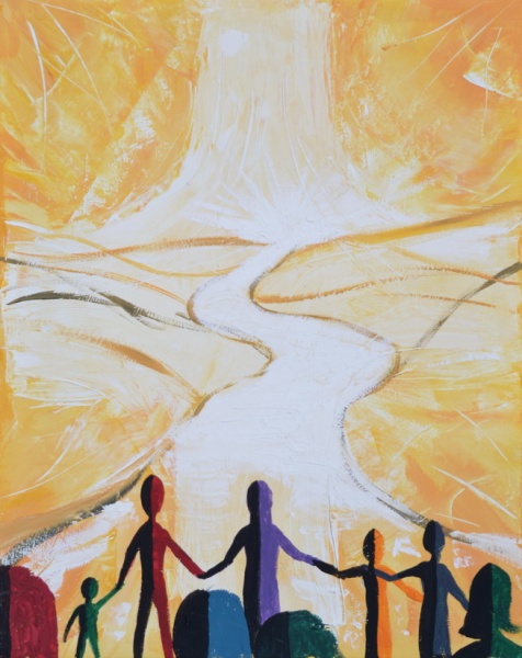 Zur Jahreslosung 2015 fand am 6. Februar 2015 der erste Kunstworkshops dieses Jahres statt. Acht Bilder entstanden, die uns das Jahr über begleitet haben.